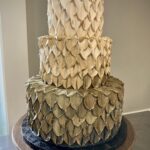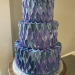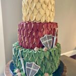 Dragon Scales Description: Dragon scales are done in the color of your choice. Each tier can be a different color OR a mixture of color tones can be done over the entire display. Keep in mind the number of tiers will have an impact on your color palette. This concept works well with a topper, floral accent, or some additional; swords and shields. Minimal upgrades to this concept will start at $25.00